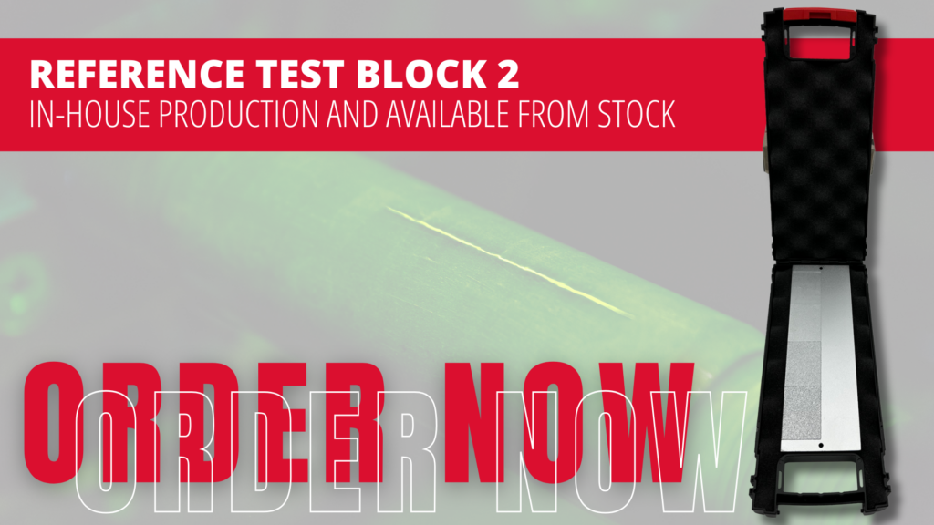 We are pleased to inform you that the reference test block 2 is now available from stock. This reference test block is used for the routine assessment of the system performance of colored and fluorescent test equipment systems for penetrant testing.